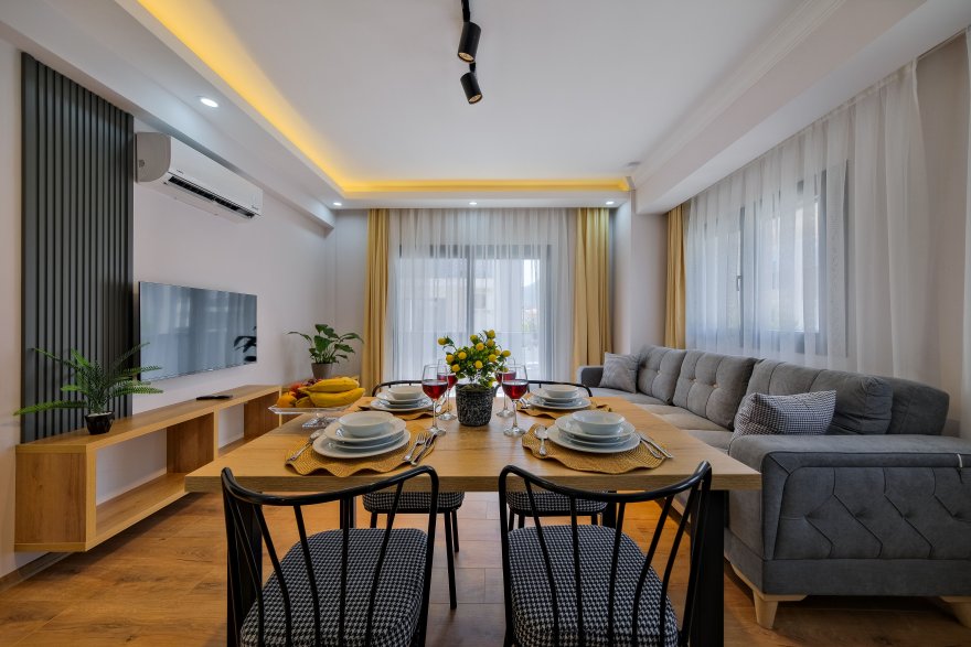Fethiye'nin kalbinde yer alan modern ve şık dairelerimiz, rahat ve konforlu bir yaşam alanı sunuyor. Merkezi konumu sayesinde tüm ihtiyaçlarınızı kolayca karşılayabileceğiniz bir noktada bulunan dairelerimiz, aynı zamanda Fethiye'nin doğal güzelliklerine ve sosyal olanaklarına da yakın.